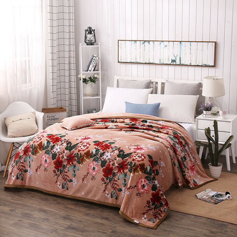 Satin Al Cicek Desen Kalin Polar Battaniye Yatakta Kis Sicak